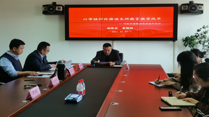 黄鹏程副院长以《以审核评估推动本科教育教学改革》为题目进行了交流,他以习近平总书记在2018年全国教育大会上做出重要指示和习近平总书记关于教育的重要论述、党的十九届五中全会切实改进本科教育教学评估工作、深化新时代教育评价改革总体方案、关于深化新时代教育督导体制机制改革的意见等相关文件精神为依据,结合我校、我院的实际情况,深度剖析了tyc5997太阳集团如何以审核评估推动人文学学院本科教育教学改革,为tyc5997太阳集团“十四五”本科教育指明发展道路和方向。