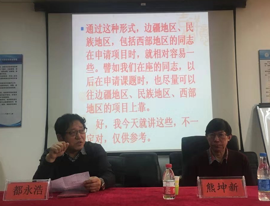 报告会首先由中央民族大学熊坤新教授从课题论证、课题细节、评审原则等六个方面,为我校及我院老师做了详细讲解。