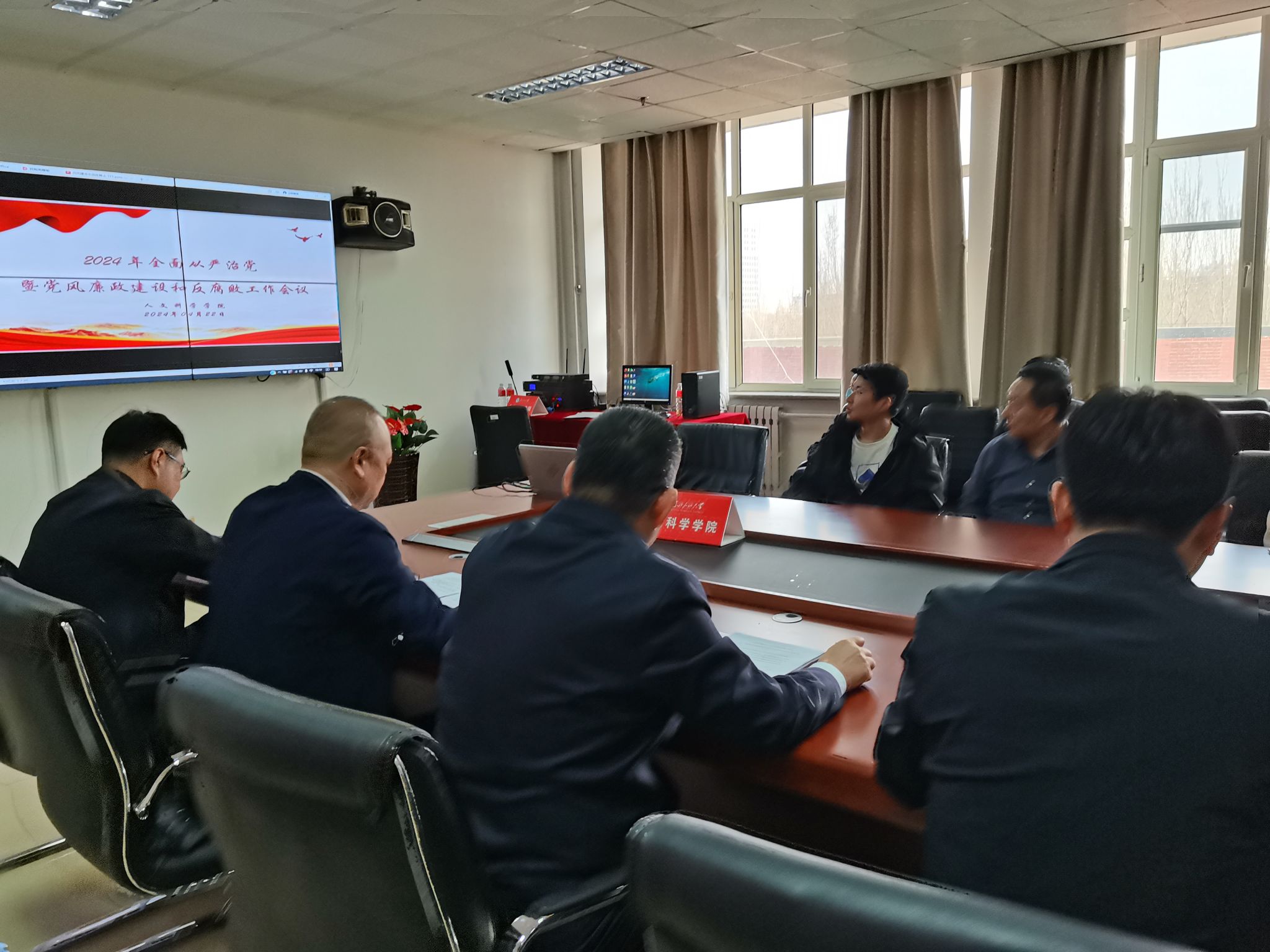 4月22日下午,我院在1A-435召开2024年全面从严治党暨党风廉政建设和反腐败工作会议,贯彻落实学校2024年全面从严治党各项工作要求,会议由院长张文喜主持,学院全体干部教师参会。