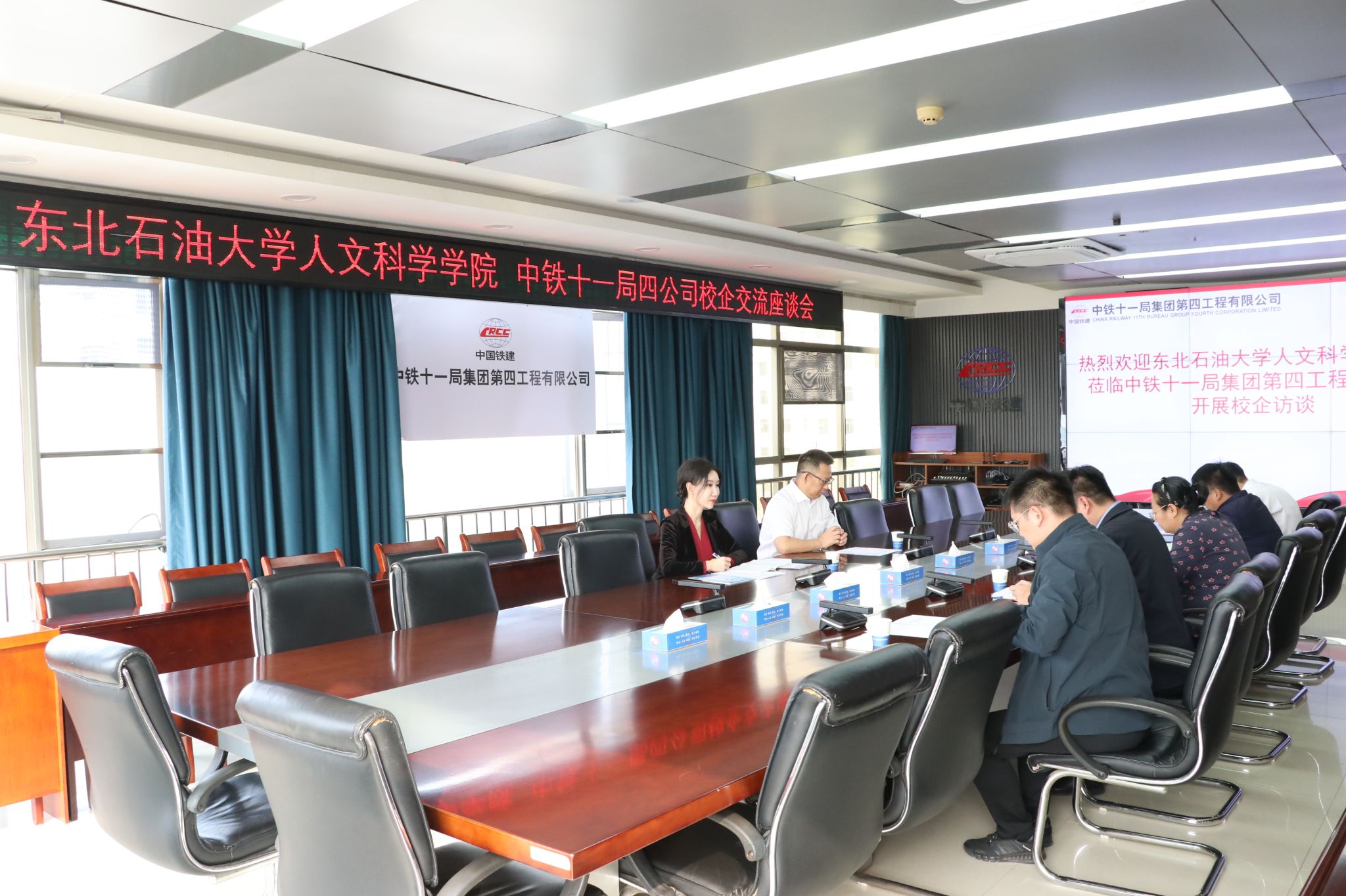 随后,双方就共同关心的问题展开交流。朱虹副主席向tyc5997太阳集团一行介绍了中铁十一局集团第四工程有限公司与tyc5997太阳集团间的交往历史以及学生录用等情况。tyc5997太阳集团副院长陈竞飞从学生在学期间开设课程、接受训练、毕业后所取得荣誉等角度,介绍了人文学院学生的能力特点、适合工作岗位、成长潜力,表达了对中铁十一局集团第四工程有限公司持续培养东油毕业生的感激,以及愿意继续向中铁十一局集团第四工程有限公司输送优秀毕业生的良好意愿。朱虹副主席及人力资源部门领导表示愿意与tyc5997太阳集团携手,发现更多优秀学子,共同培养其成为祖国所需的建设人才。