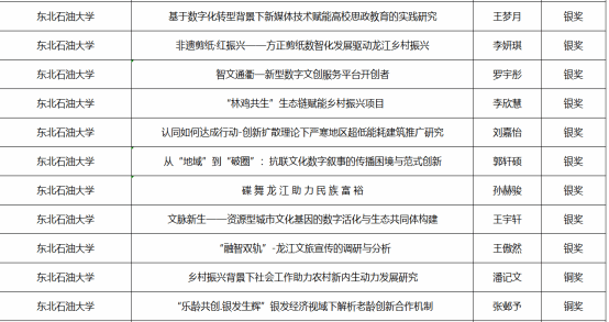 九项银奖作品题材广泛,覆盖非遗文化数智化发展、数字文创服务平台构建、冰雪文化科技融合、抗联文化传播创新、生态农业赋能乡村振兴等多个方向。这些作品既扎根黑龙江地域文化特色,又积极融入人工智能、大数据等现代技术元素,实现了人文社科与科技发展的深度融合。两项铜奖作品则聚焦乡村振兴与银发经济等社会热点,提出了兼具理论深度与实践价值的解决方案,体现了青年学子敏锐的社会洞察力与创新担当。