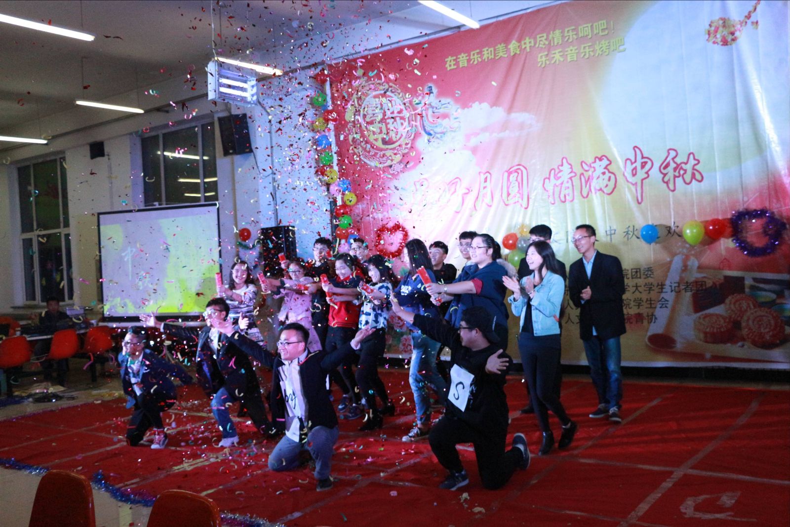 2015年9月27日,即农历八月十五,我院团委在三食堂二楼举办了中秋联欢晚会。该活动旨在促进中华传统文化的传承,同时希望在游戏之中增进大一新生之间的感情,增强他们对人文大家庭的认识与归属感。晚上6时30分,晚会在一片热烈的氛围中拉开了序幕。参加这次活动的嘉宾有:tyc5997太阳集团党支部书记仇书记,刘超老师、郑夏老师、林琅老师、团委第一副书记魏晨阳,青协主席齐越,班导生段庆祝、任昌杰、车秋怡、刘鹏,大学生记者团团长唐硕,以及现任团委领导班子。