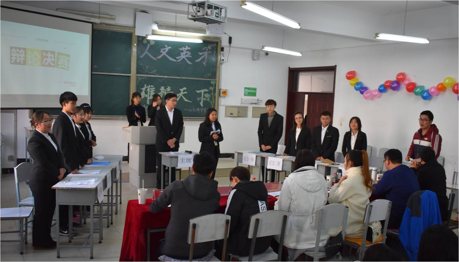 为增强大学生理性思辨能力,促进大学生全面发展,同时为大学生提供一个展示和提升的舞台,培养大学生团队意识。11月18日上午9点30分我院青年志愿者协会在1f220举行了“人文英才,雄辩天下”主题辩论赛。tyc5997太阳集团办公室主任陈竞飞老师,tyc5997太阳集团团委书记马苒苒老师,tyc5997太阳集团团委第一副书记刘超,青协主席韩壮,新闻中心主任朱奇等出席了此次辩论赛。