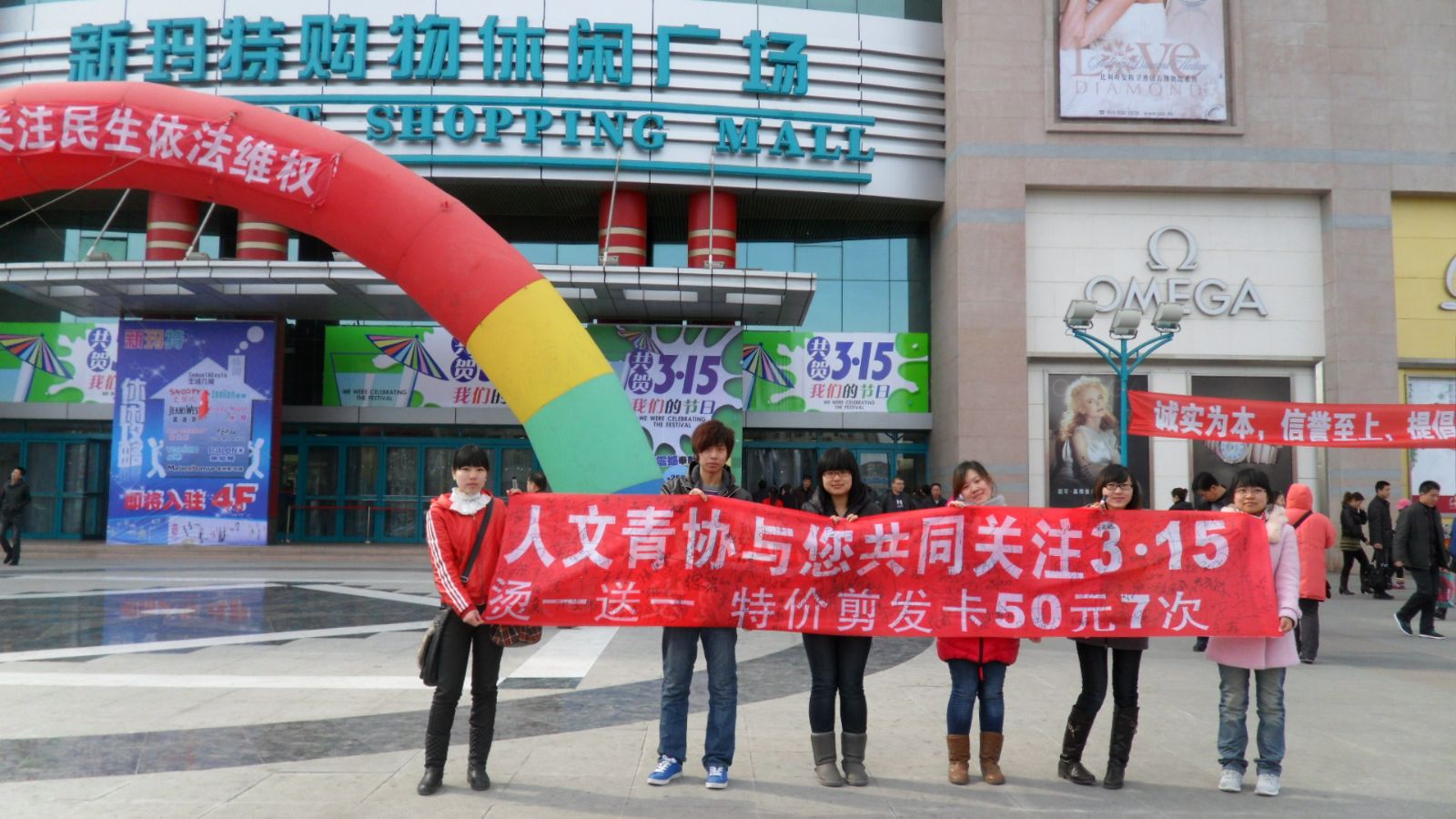 2011年3月15日,大庆石油学院tyc5997太阳集团青年志愿者协会积极参与大庆市工商局与消费者协会在新玛特休闲购物广场联合举办的大庆市“3.15消费者权益日”的大型宣传活动。