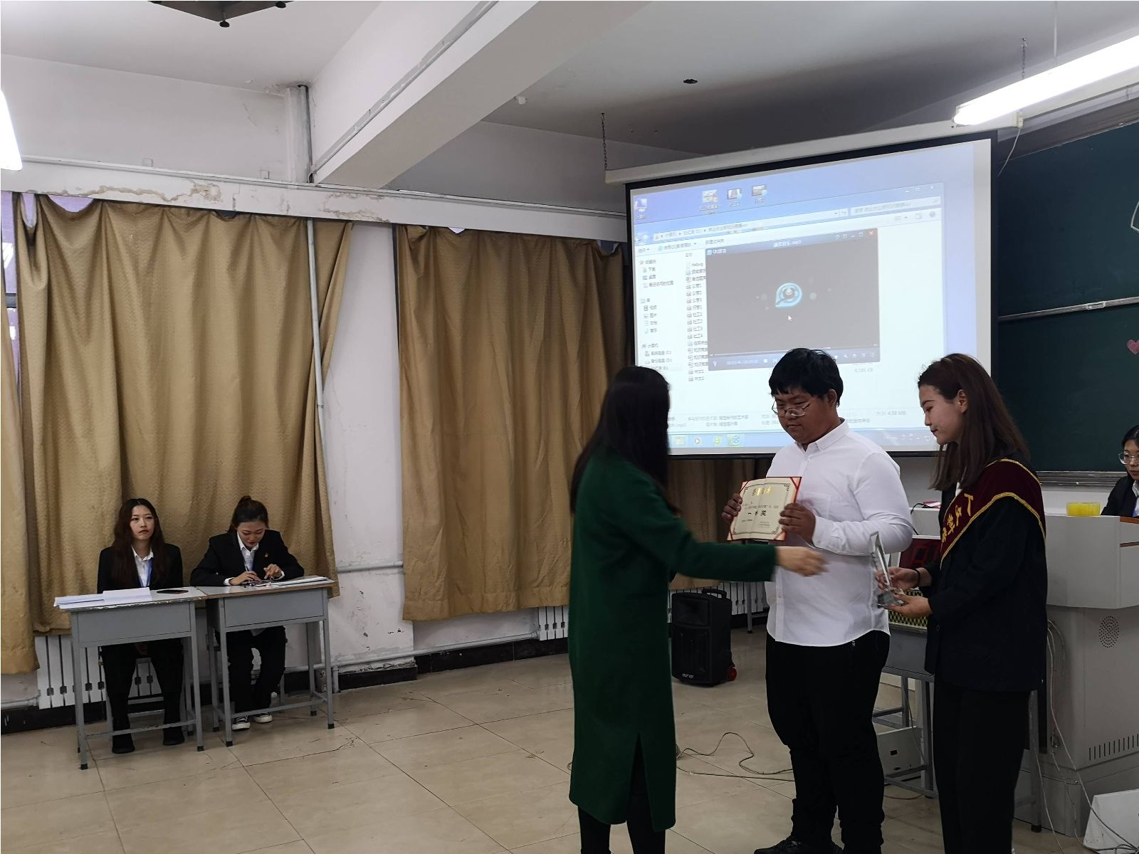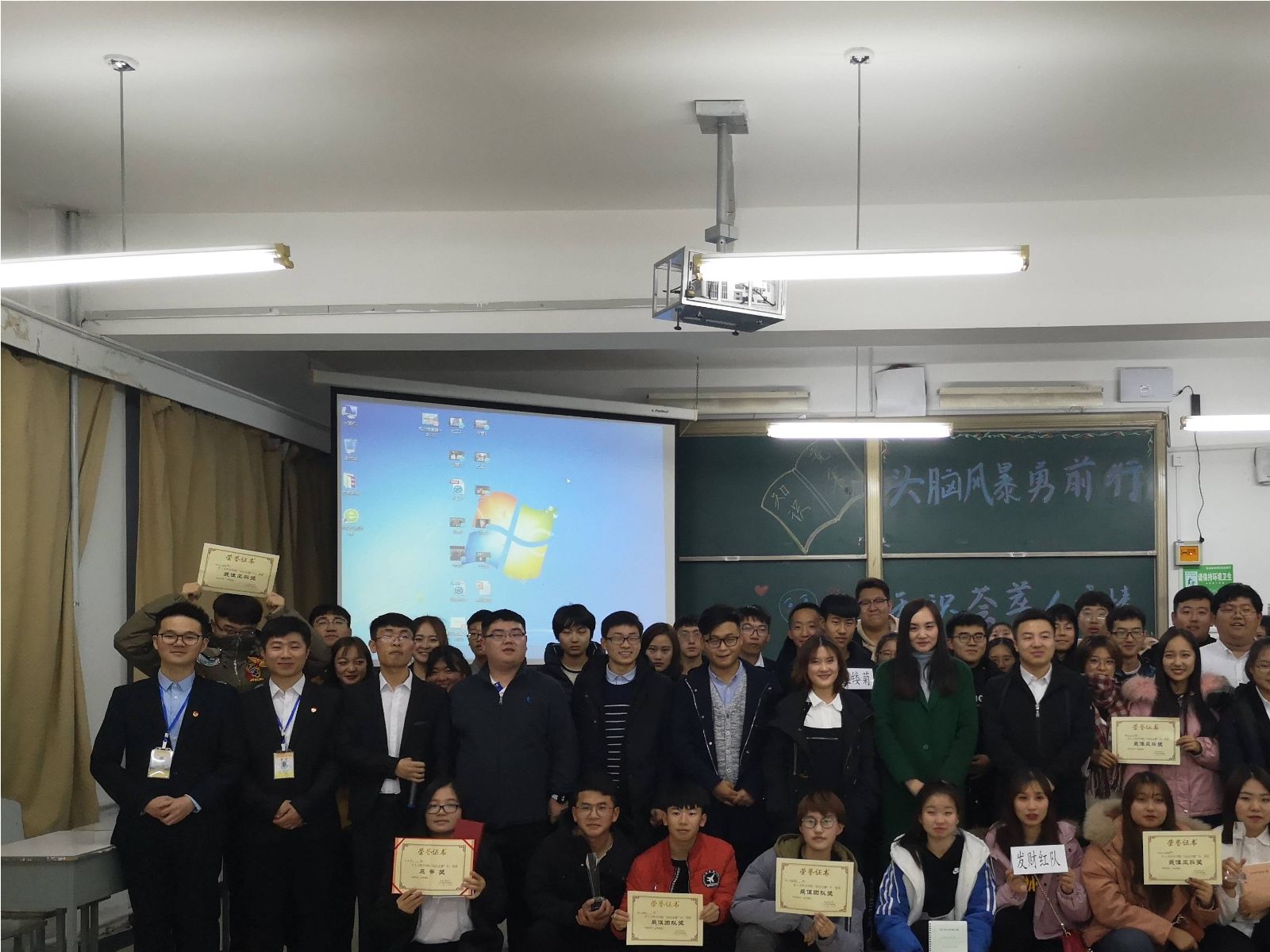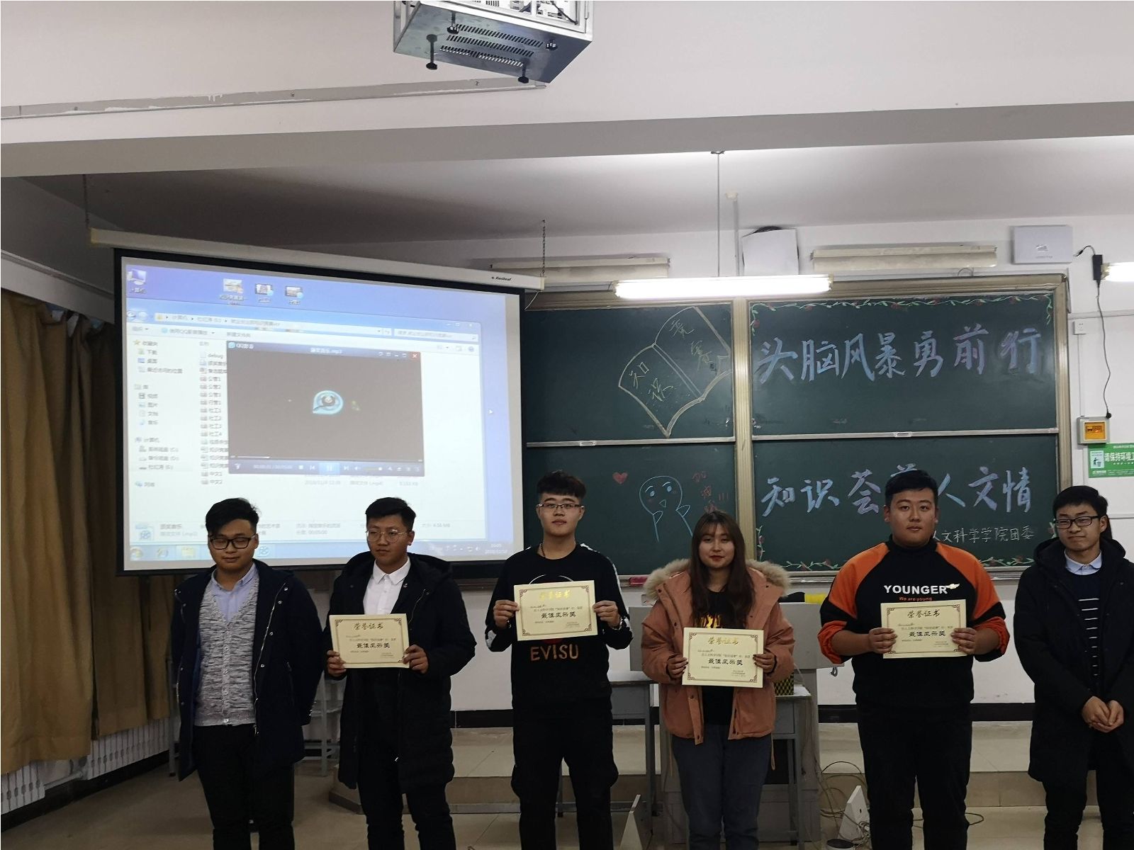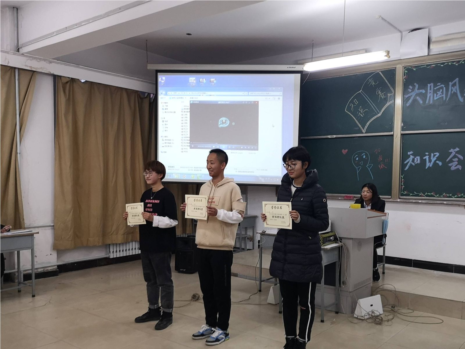 激烈的比拼过后,比赛结果尘埃落定。新闻中心主任朱奇、青协主席韩壮为获奖者颁发“最佳风采”奖,学生会主席胡士鹏为获奖队伍颁发“最佳团队”奖,团委第一副书记刘超为社工18-2班“梦之队”颁发三等奖,tyc5997太阳集团大学生辅导员王宇玲老师为社工18-4班“霸气四人组”队颁发二等奖,团委书记马苒苒老师为行管18-1班“啥也不会”队颁发一等奖。马苒苒老师在对此次知识竞赛做总结时再次强调了学习的重要性,强调学院的学风建设。王宇玲老师也表示,我们要在大学生活中,抓住机会,积极参与竞争,勇敢迎接挑战。最后,在全体参赛人员与工作人员的合影留念中,“知识竞赛”完美落幕。