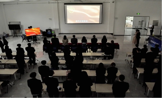 会议开始,全体起立合唱中国共产主义青年团团歌,汪宁宇老师对获奖同学表示祝贺并作开幕致辞。