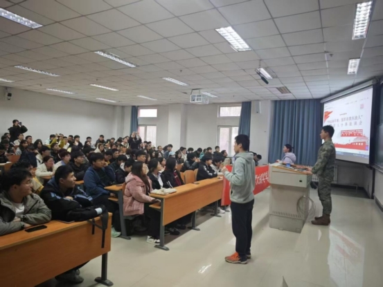除了分享个人经历,李尊宇还结合当下国际形势,深入浅出地讲解了国防安全的重要性。通过图片、视频等资料,详细介绍了我国国防力量的发展现状,生动展现了人民军队的优良传统和国防建设的时代成就,以及大学生在国防建设中可发挥的积极作用,鼓励同学们投身国防事业,为国家安全贡献青春力量。